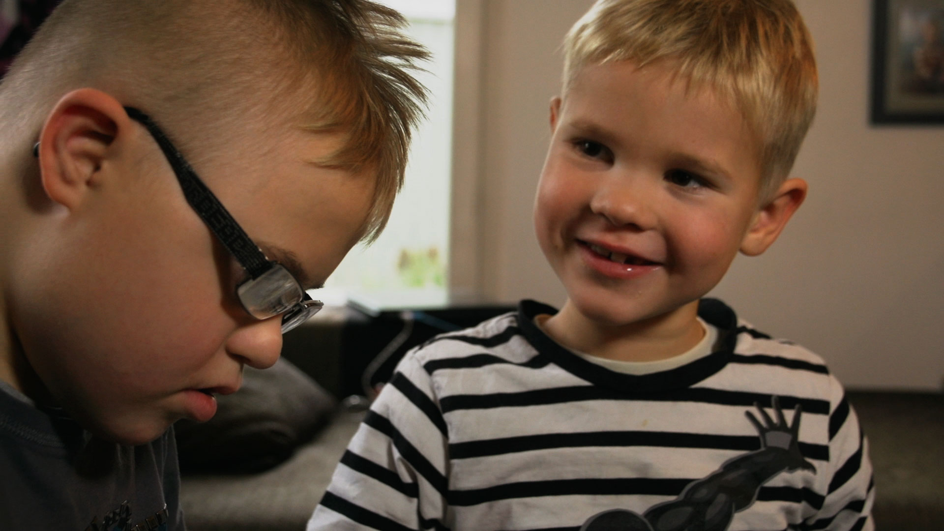 7-year-old Ville has two siblings, a 14-year-old big sister Viivi and a 12-year-old big brother Veeti. Veeti has Down syndrome and communicates with sign language and pictures. The boys have found a common language easily, but mother has to interpret Veeti sometimes. Ville says that “some are born as Down children and some are not”. Despite their different ways of communication the boys live normal lives which includes fun as well as tussles. Film about communication and a good brotherhood.